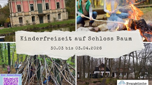 Vom 30. März bis zum 3. April 2026 erwartet die Teilnehmenden ein spannendes Programm mit Spiel, Spaß und Entdeckungen in der Natur. Schloss Baum liegt mitten im Wald und bietet reichlich Platz für Action draußen, kreative Aktivitäten drinnen und gemeinsame Erlebnisse in der Gruppe. Neben Geländespielen und Abenteuern im Wald wird es auch Zeiten geben, in denen wir biblischen Geschichten nachspüren und über die Schöpfung staunen.